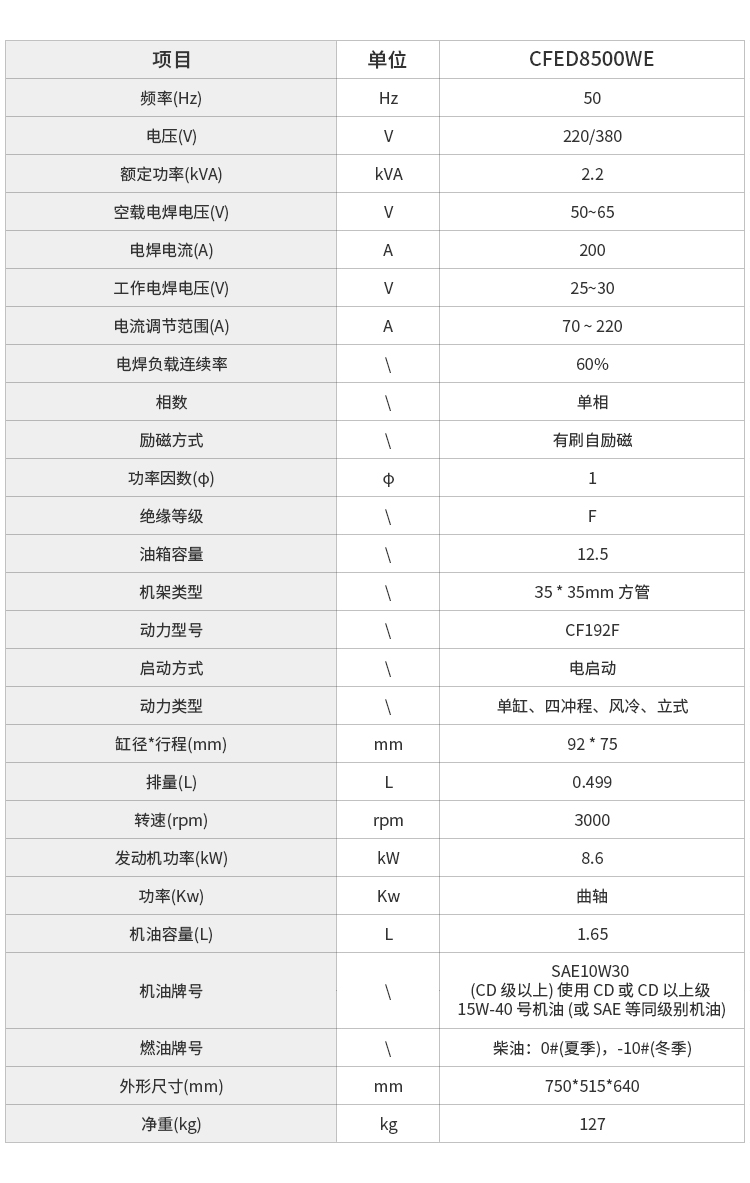 采用常發(fā)風冷四沖程柴油發(fā)動機,提供焊接電流。
