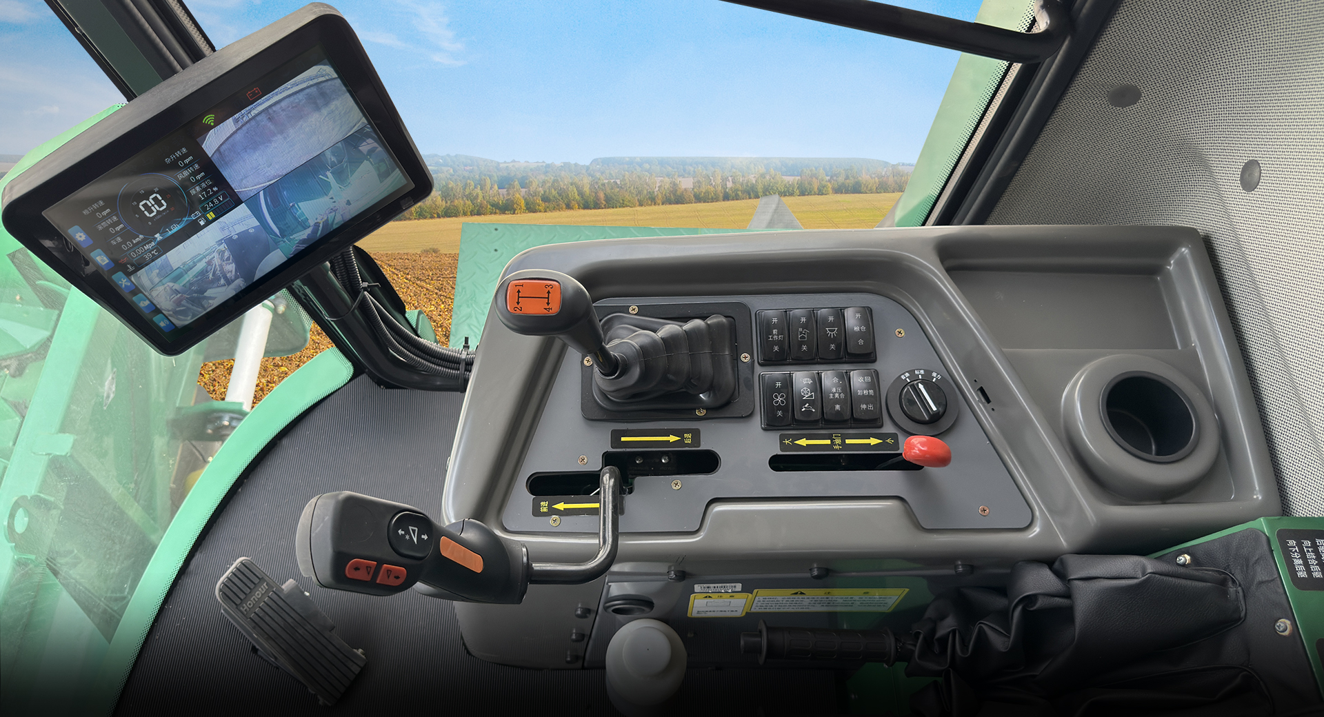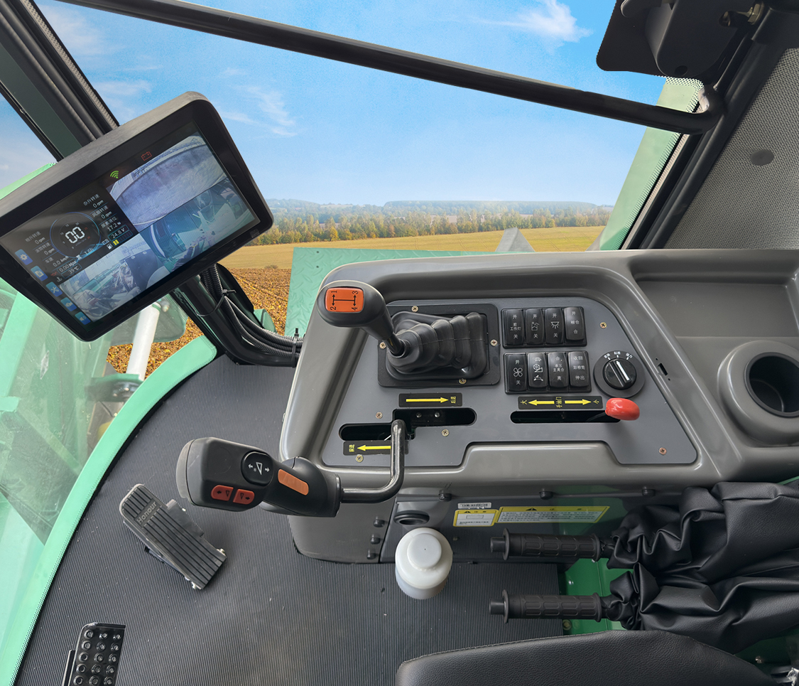 無級(jí)變速、撥禾輪升降、割臺(tái)升降集成一桿操作,操縱更靈活; 卸糧筒伸出收回采用電控操縱,操作簡單; 主離合操縱升級(jí)為電控液壓式,一鍵接合分離,操縱更省力。