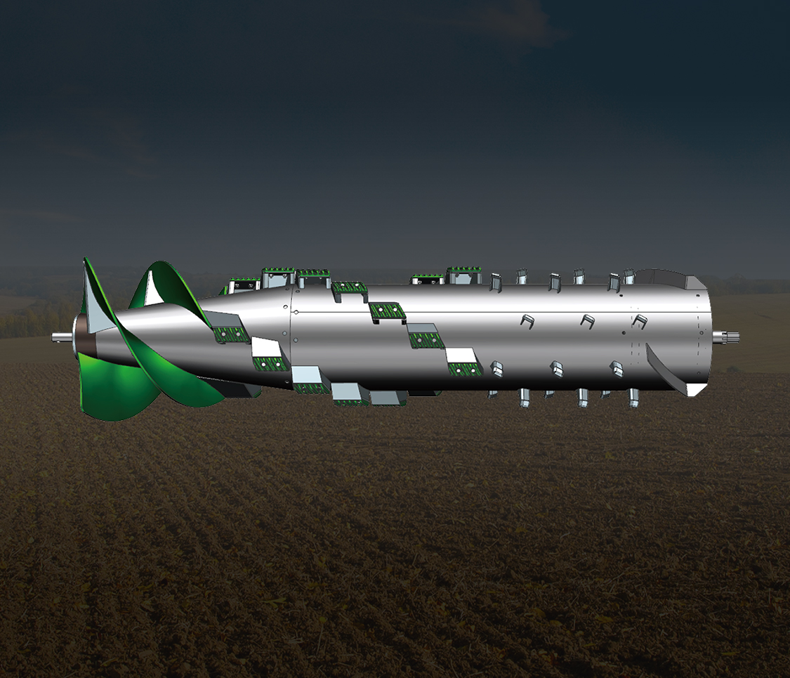 三合一復(fù)合脫粒滾筒,子彈頭喂入更順暢,脫離干凈,破碎率低,分離徹底,可兼收多種谷物; 采用單縱軸流脫粒分離機(jī)構(gòu),脫粒柔和,分離徹底,收玉米破碎率低。