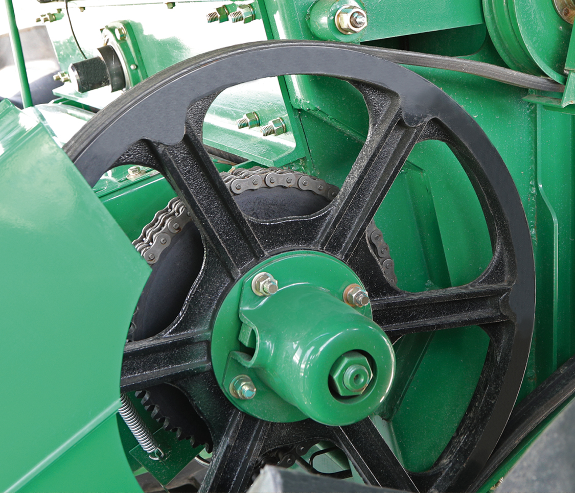 割臺(tái)主傳動(dòng)鏈條采用雙排12A鏈條,可靠性更高。